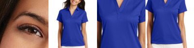 An understated pebble texture meets high-performance moisture -wicking from Dri-FIT fabric in this Nike Golf style. Designed to keep you comfortably dry, features include a self-fabric collar, two-button placket and open hem sleeves. Pearlized buttons are selected to complement the shirt color. The contrast Swoosh design trademark is embroidered on the left sleeve. Made of 3.9-ounce, 100% polyester.
